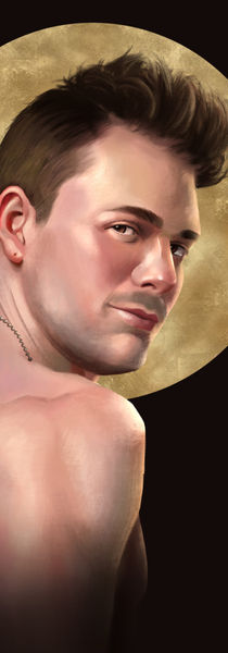 In my series "Sacred Intimacies," I present digital portraits of gay porn stars adorned with gold halos against stark backgrounds. This collection modernizes traditional religious icon paintings, blending sacred imagery with contemporary subjects to spark a dialogue on reverence and marginalization.